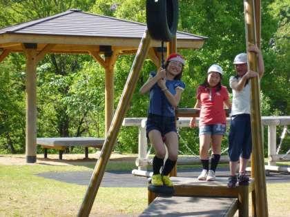 アスレチックでは、近所の小さな男の子と一緒に遊びました。