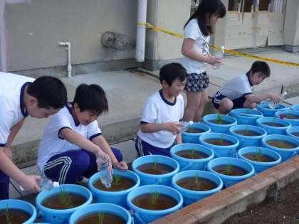 6月6日(月)、田植えをして1週間が過ぎました。この週末気温が高かったため、かなり水が少なくなっていました。