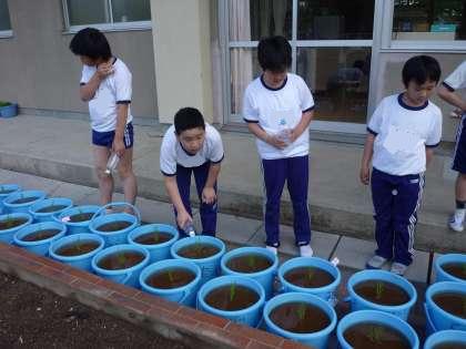 登校するとすぐ、ペットボトルで水の補給をしました。500mLペットボトルで3回補給した人もいました。