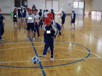 1年生は、体育で「ボールけりゲーム」を行っていました。目標物のコーンの間を通そ...