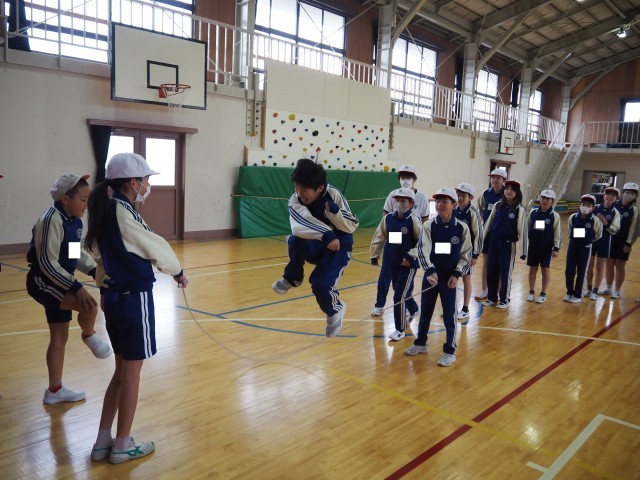 1年生は、体育で「なわとび」を行っていました。3学期に入り本格的になわとびの学...