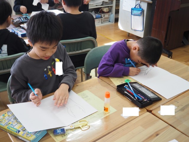 2年2組は、図画工作で「たのしく うつして」の制作活動を行っていました。みんな...