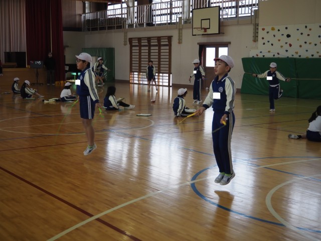 2種目目は、30秒後ろ持久跳びに挑戦です。リズムよく30秒跳びきる児童が多く見...