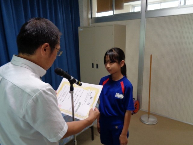 お昼の放送の中で、代表者に賞状を伝達しました。