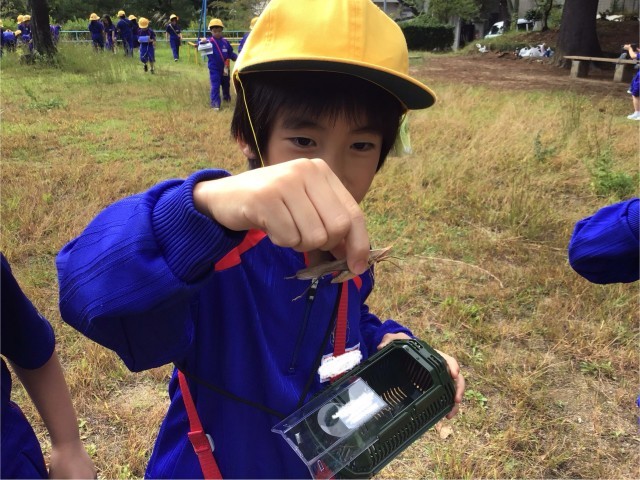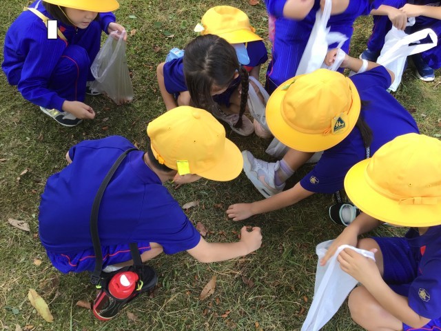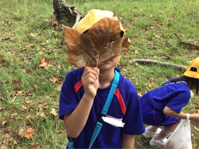 今日は、秋の酒蓋公園へ行ってきました。大小様々な形のどんぐりや自分の顔くらい大きな落ち葉を拾ったり、秋の虫を探したりしました。たくさんの秋を見つけながら、季節の移り変わりに気づくことができました。