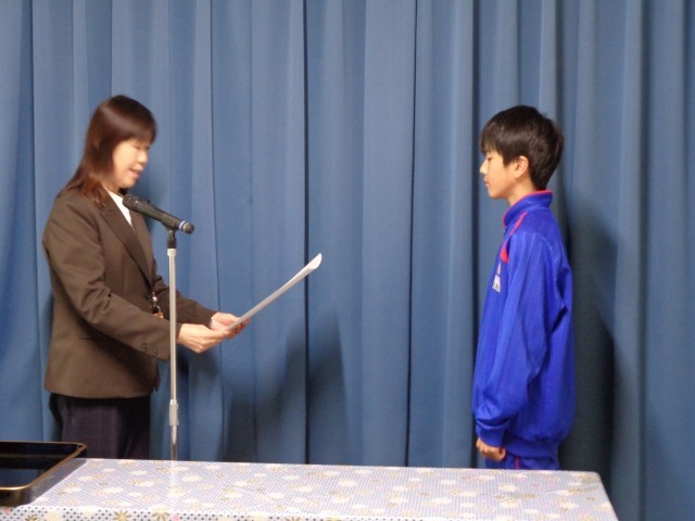 お昼の放送の中で4名の代表の皆さんに賞状が伝達されました。