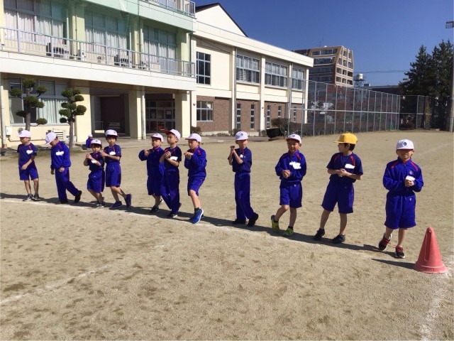 体育の時間も休み時間のぐるぐるキャンペーンも、みんな一生懸命持久走の練習に励んでいます!誰一人歩くことなく、最後まで全力で走り切る姿がすばらしい1年生です。
