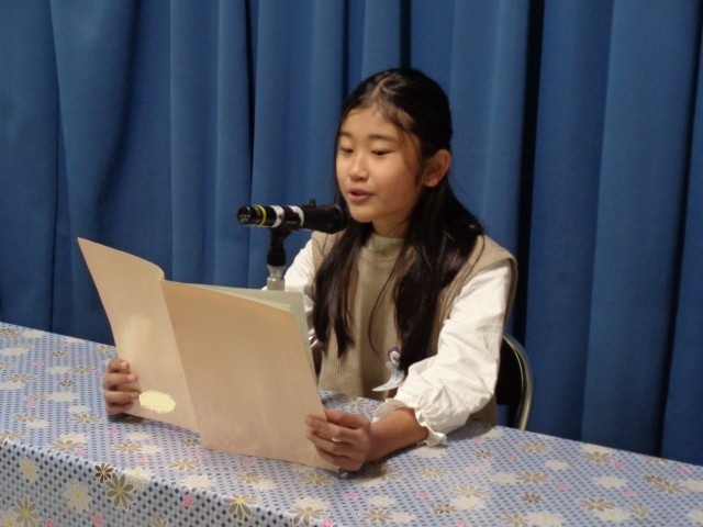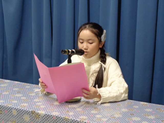 練習の成果を発揮し、とても上手に読めていました。内容も、表現の仕方もさすが6年生です。各教室から拍手が送られました。