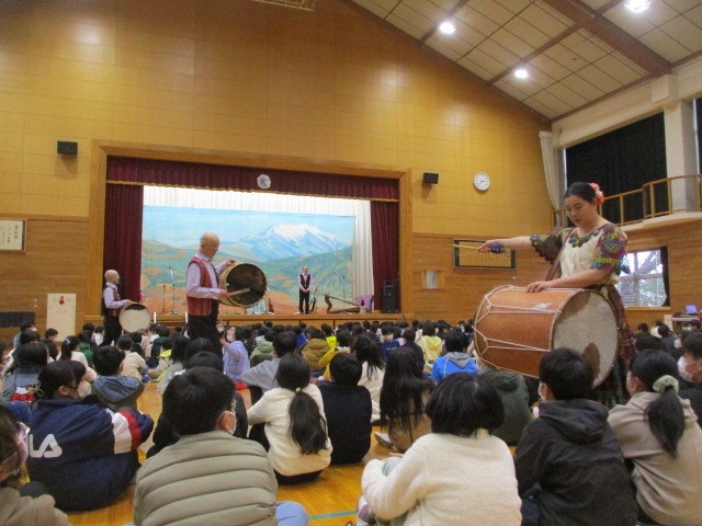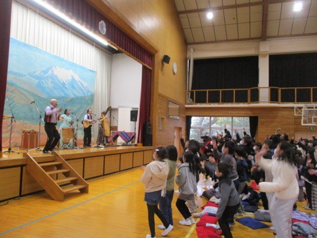 11月25日(火)、全校生が上学年下学年に分かれて鑑賞教室を行いました。世界の民族音楽シリーズ『アンデスの音楽「大地の賛歌」』さんをお招きして、ボリビアをはじめとした南米の音楽を楽しみました。南米の楽器クイズや手拍子を楽しんだり、音楽に合わせて掛け声や体を動かしたりと、音楽を楽しむ子どもたちの姿が見られました。