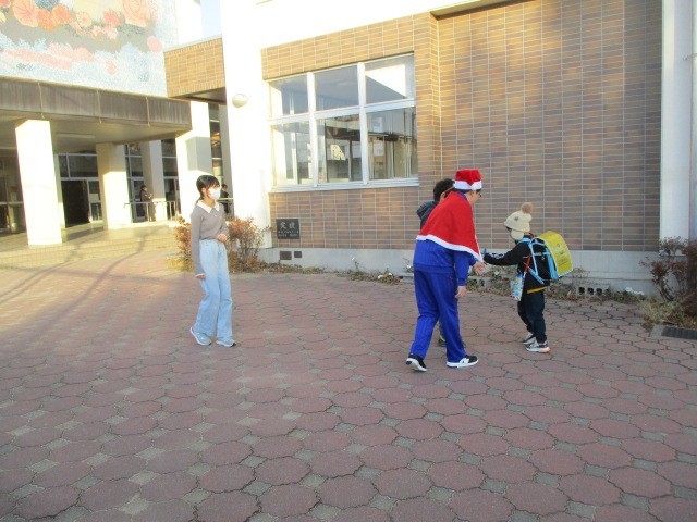 毎朝、運営委員会の当番が昇降口前で「あいさつ運動」を行っています。運営委員の皆さんが「おはようございます」と元気に呼びかけてくれるので、気持ちのよいあいさつがたくさん行き交っています。12月17日はファイヤーボンズの皆さんが来校し、昇降口前でいっしょにあいさつ運動を行ってくださいました。