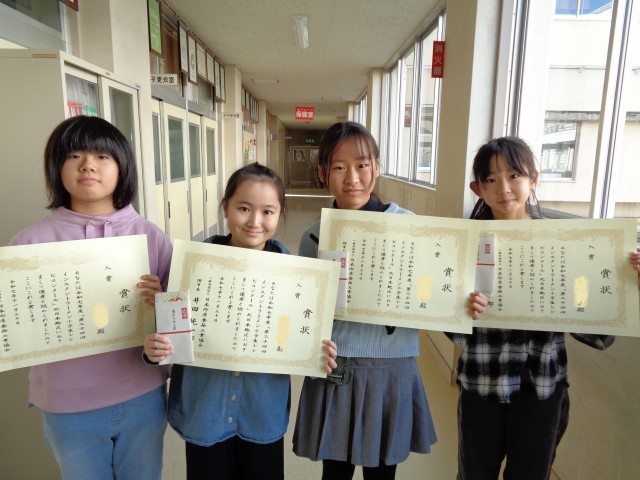 夏休みの課題の一環として取り組んだ「ミルキー図画コンクール」と、同じく夏休みの課題として6年生が取り組んだ「インスタントラーメン小学生レシピコンクール」において、優秀な成績をおさめた皆さんへ賞状が渡されました。