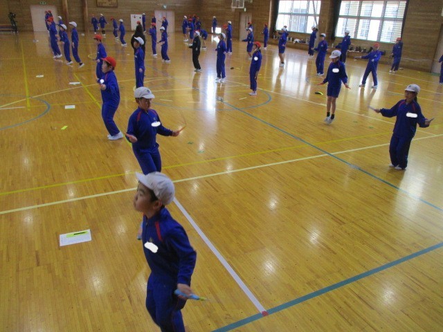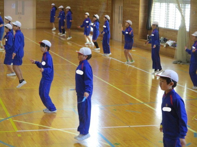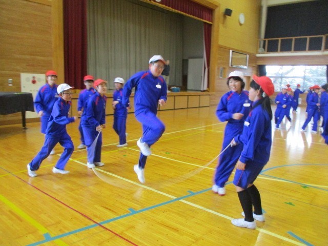 1月23日(金)、6年生がなわとび記録会を行いました。開会式の後、持久とびや二重とびなどの種目に挑戦しました。これまでの練習の成果を発揮して、あきらめずに全力でチャレンジすることができました。個人種目の後は、グループごとに長なわとびを行いました。みんなで声を掛け合い、力を合わせて楽しく取り組みました。