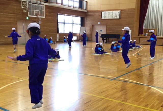 1月29日になわとび記録会が行われました。この日のために、体育の時間や休み時間を使ってたくさん練習をしてきました。どの子も2分間持久跳び合格や種目跳びの自己ベストを目指して、真剣に取り組みました。昨年よりも体力がつき、長い時間とぶことが出来ていて、努力の成果が見られました。回数も自分たちで数えることが出来、成長を感じました。記録会は終わりましたが、まだまだ色々な技に挑戦して、力をつけてもらいたいと思います。