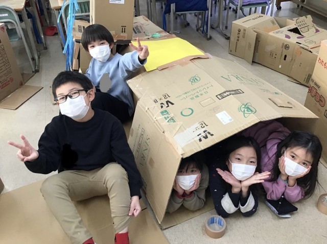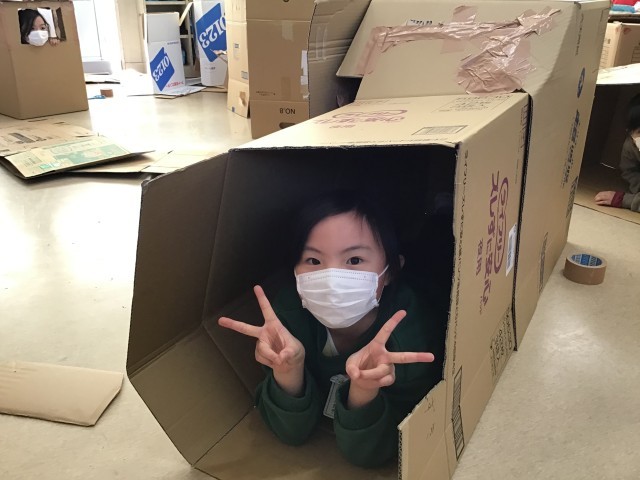 仕上がりました。友達の作品を体験して、楽しんでいます。材料の準備、ありがとうございました。