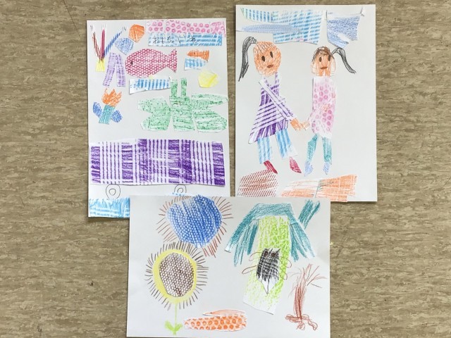 子どもたちは、図工の時間をとても楽しみにしています。今日は、こすり出しで様々な形ができることを学習しました。校内ででこぼこを見つけてはこすり出しを楽しみ、写した模様を使って思いついたものを絵に表しました。最後に掲示された作品を見合うことで、友だちの作品の面白いところや工夫しているところを感じ取ることもできました。
