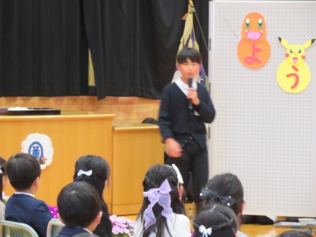 6年生による劇を交えた学校紹介では、最高学年の頼もしい姿を新入生が真剣な眼差しで見つめる姿が印象的でした。今日から「明るく、かしこく、たくましく」歩み出す子どもたちを、温かく見守っていただければ幸いです。