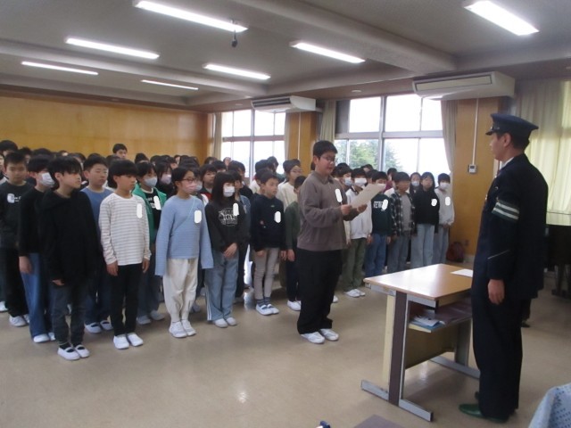 4月7日(火)、6年生が家庭の交通安全推進員委嘱状交付式に臨みました。郡山警察署から署員の方が来校され、6年生の代表児童に委嘱状が手渡されました。その後、代表児童が家庭の交通安全推進員として実行することを堂々と述べました。みんなで力を合わせて交通安全を推進していきます。