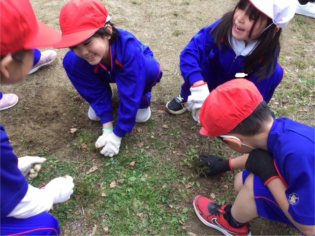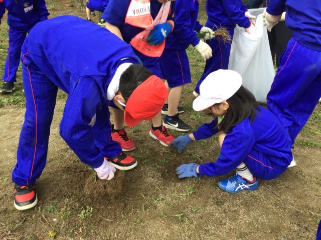 運動会に向けて、2年生みんなで校庭の草むしりをしました。短い草を抜くことに苦戦しましたが、できるだけ根っこから抜くよう頑張りました。ボランティア活動のための軍手やタオルのご準備、ありがとうございました。
