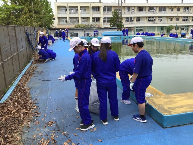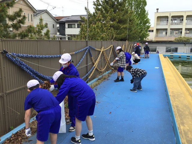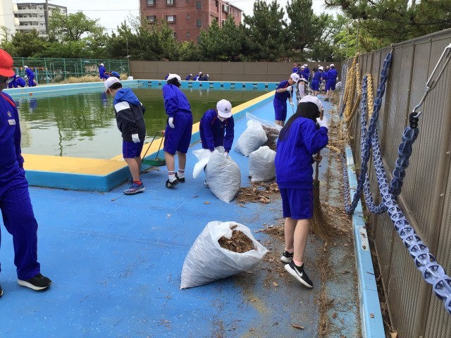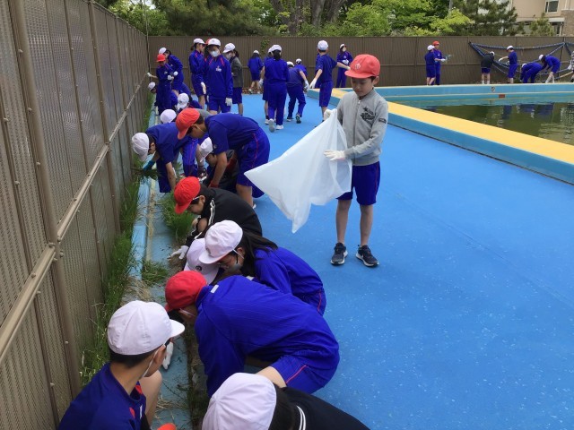 そんな思いを胸に、奉仕活動の一環として、プールサイドの清掃をしました。