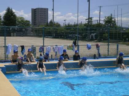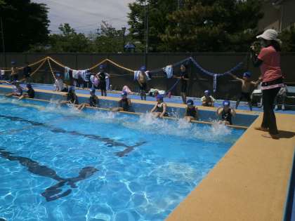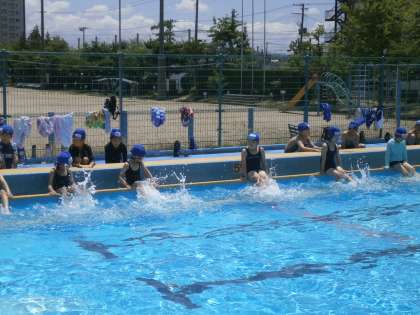 3校時目にプールでがんばる2年生。