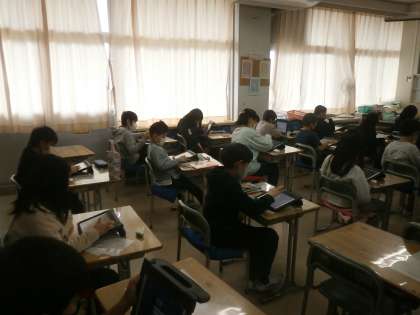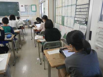アンケートに答える練習をする4年生。