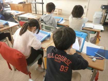 算数のお勉強をしている1年生。