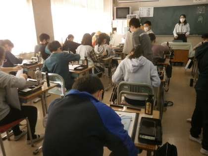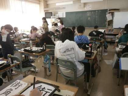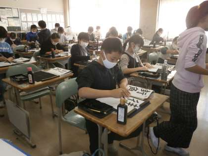 毛筆書写に取り組んでいまs。