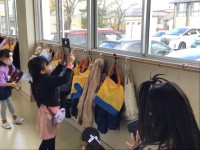 図書室は、黄色い帽子であふれんばかり。