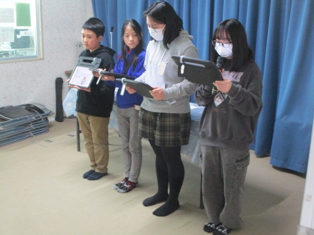 2組で道徳の授業研究を行いました。くまに親切にされたおおかみの気持ちに共感しな...