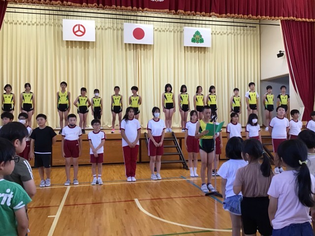 選手の児童は、夏休み明けから約1か月間、朝や放課後の時間を使って陸上の練習に取り組んできました。今年度は、50m走、4×100mリレー、100m走、1000m走・800m走、走り幅跳び、ソフトボール投げに出場します。