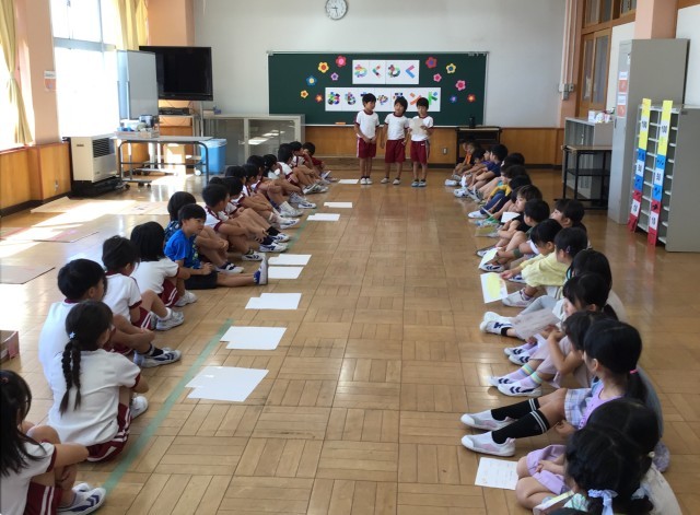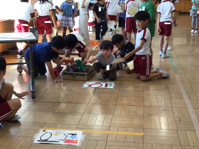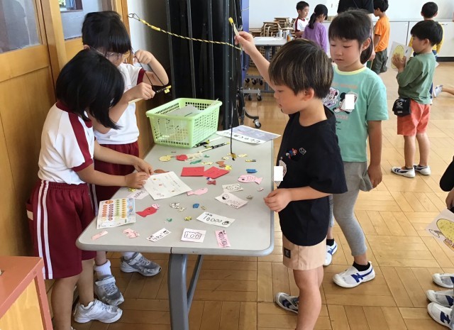 2年生の「わくわくおもちゃランド」に招待してもらい、手作りおもちゃでたっぷり遊びました。2年生が遊び方をやさしく説明してくれました。それに「がんばれ!」「上手!」と応援してくれたので、楽しくゲームにチャレンジすることができました。「まだまだ遊びたい!」と遊び足りないくらいの楽しい時間でした。2年生のみなさん、ありがとうございました!