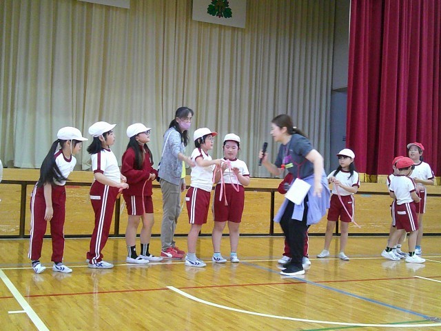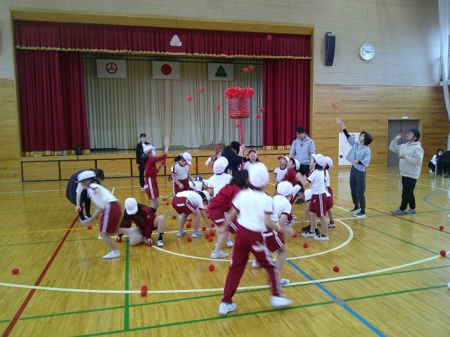お家の方と一緒に「おたすけ玉入れ」「しっぽ取りゲーム」を楽しみました。