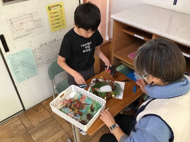 くわの子文化祭では、家の人と冬のリース作りを行いました。