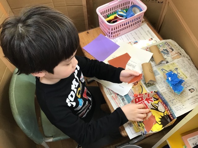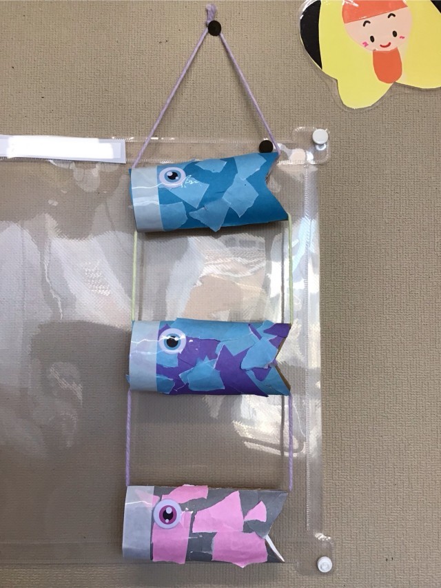 廃材を使って、こいのぼりの飾りを作りました。細かい作業も丁寧にできました。