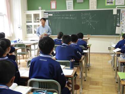 1次関数の学習で、関数の課題を表やグラフ、式の3つの方法で表して考える授業でした。