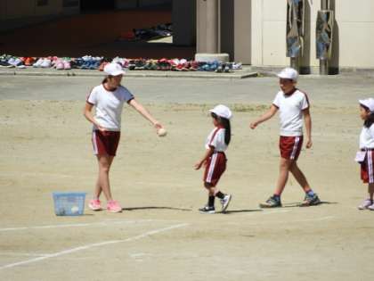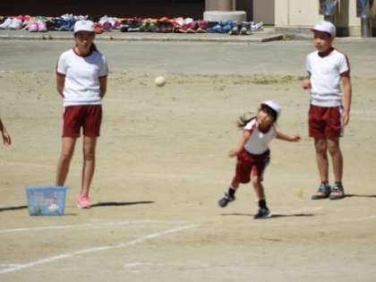 はじめて取り組む1年生も、6年生に教えてもらいながら安心して各種目に取り組みました。