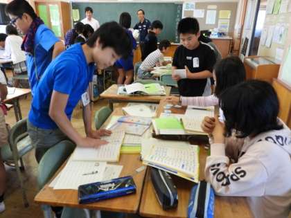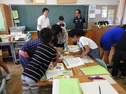 5年生の英語表現科は、年間で50時間学習します。ライラン先生、担任とともに「アルファベットで遊ぼう」の単元の学習をしました。グループでアルファベットが書かれた単語を使って協力しながら単語をつくりました。