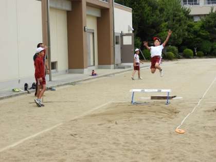 今日は、持久走、走り高跳び、走り幅跳び、ハードルの4種目に分かれての練習でした。特に、7月8日(日)の県大会へ向けて、県大会へ出場する幅跳び、ハードル、高跳びの子どもたちは、1センチでも1秒でもよい記録が出るよう最後の追い込みの練習に取り組んでいます。