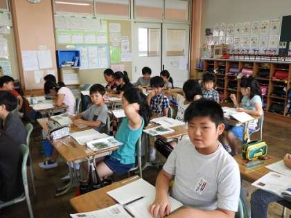 4年生教室では、漢字のまとめのテストの振り返りをしていました。多くの子がニコニコしてテストを見せてくれました。