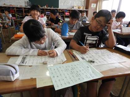 「ここまちがっちゃった」「すごい!あともう少しで100点だね」こんなやりとりも教室で・・・。