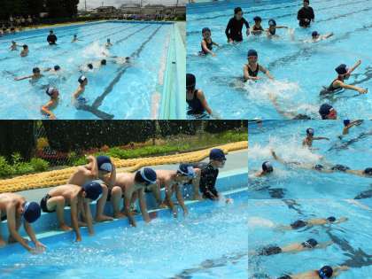 保護者の方もボランティアとして、子どもたちの安全面に配慮しサポートをしていただきました。プールには、子どもたちの歓声が響き渡っていました。