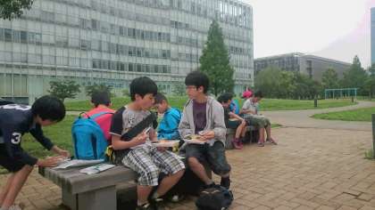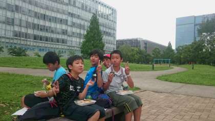 都会の風を肌で感じながら、昼食を美味しそうに食べました。