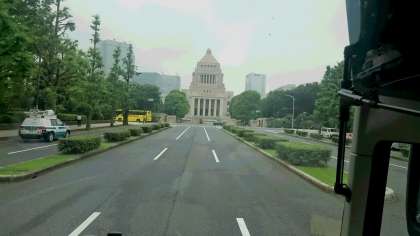 ラッシュにもあわず、早目についてしまいました。時間調整で都内をバスで見学です。