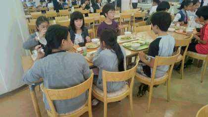 生活係の子がシーツを部屋に運び、すぐ夕食です。
