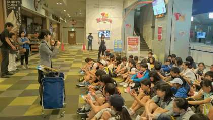 キッズザニアで担当の方に説明をしていただき、いよいよ活動のスタートです。