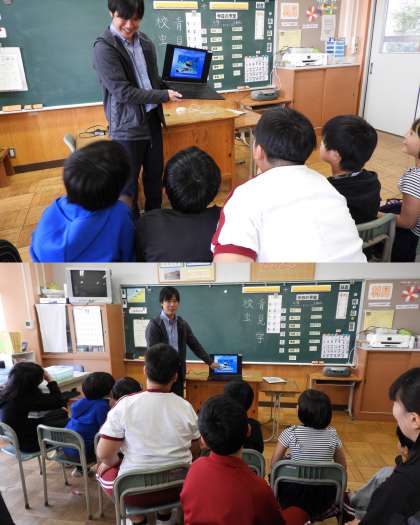 ハワイ出身のライラン先生、今日は映像を通してハワイの風景や動植物など子どもたちに紹介してくれました。特に、ハワイの魚で、とても長い名前の魚を教えてもらい、みんなでビックリ!!