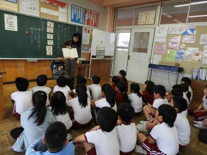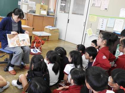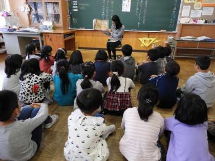 2年生と3年生のクラスに読み聞かせに来ていただきました。写真のように、子どもたちは、語り口に吸い込まれるように聞いています。おはなしベリーズの方々には、選書や時間配分などいつも工夫され、子どもたちに寄り添った読み聞かせをしていただきありがとうございます。