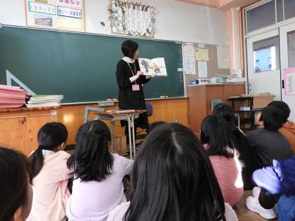 今日は、1年生、3年生、4年生の各クラスで本の読み聞かせをしていただきました。読み聞かせが終わると図書室に集合し、わきあいあいと情報交換をします。メンバーの方々は、とっても良い雰囲気の中で活動をされています。関心のある方は、ぜひ見学に来てください。
