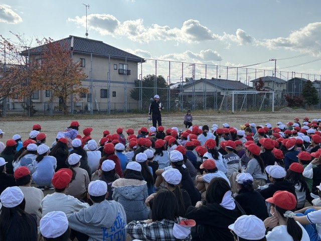 第2回の避難訓練が実施されました。今回は清掃中に抜き打ちで非常ベルが鳴るという、より現実に近い想定でした。中には本当に火事かと思って泣きべそをかいてしまう低学年の子も見られましたが、高学年の子どもたちが優しく接してくれたおかげで、すぐに落ち着くことができました。「避難開始!」の合図とともに校庭に避難しましたが、この時も高学年が寄り添って避難してくれたので、ざわつくこともなく無事に避難を終えることができました。