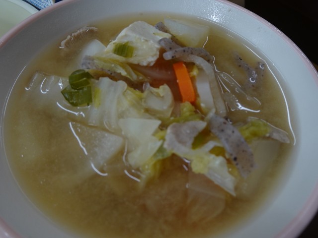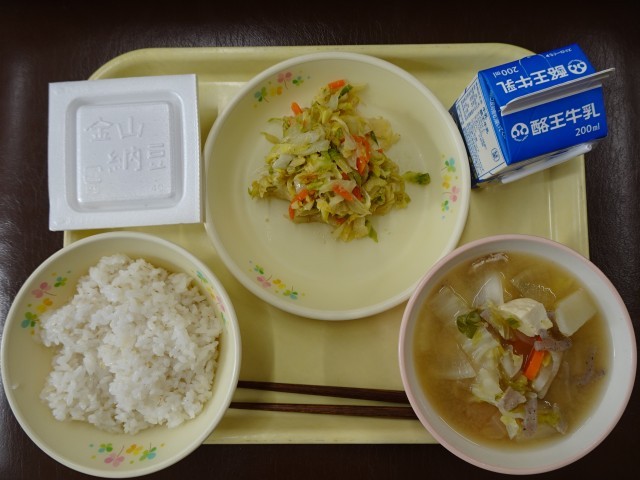 ごはん、納豆、ごま和え、とん汁、牛乳でした。